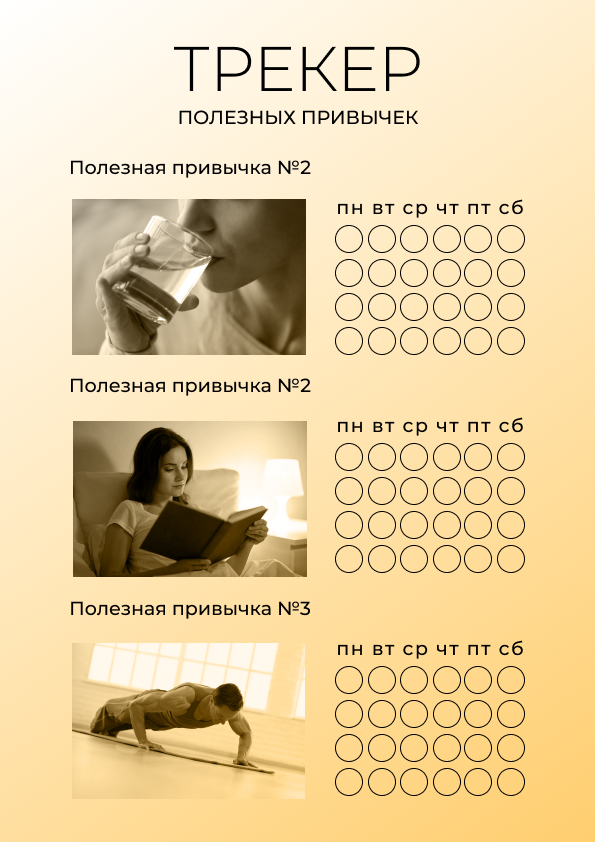 В результате онлайн ведения вы внедрите несколько полезных привычек, которые поднимут вашу продуктивность в жизни и улучшат здоровье в целом