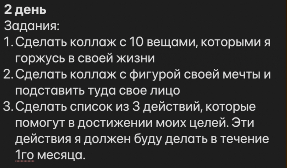 Вы получите задания, благодаря которым вы сможете проанализировать свой текущий образ жизни, привычки и понять, что вас приближает к вашим целям, а что отдаляет